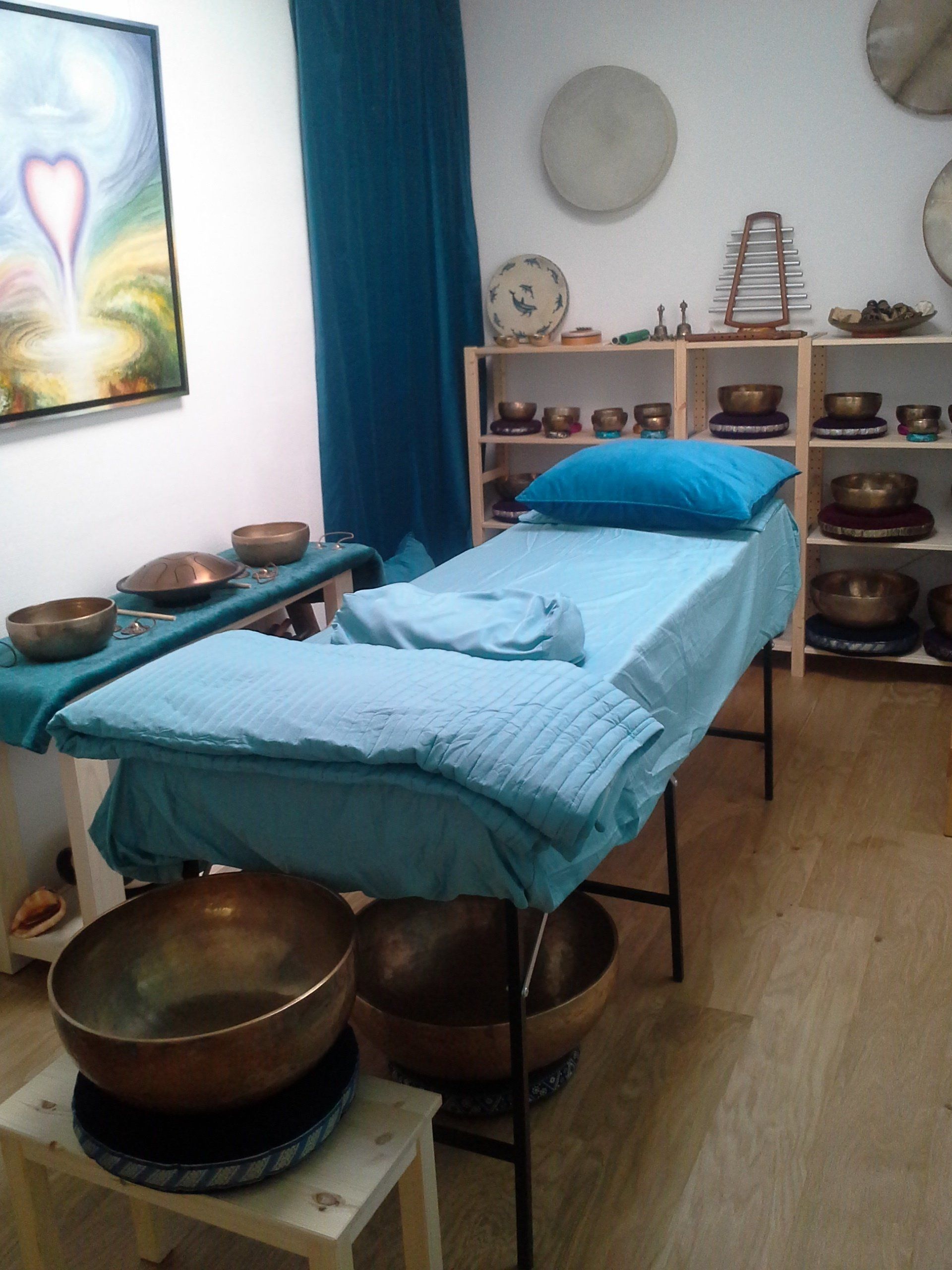 Mariska geeft ook individuele klankbehandelingen. Een sessie duurt een uur inclusief voorbespreking en nazitten met kopje thee. De behandeling zelf duurt een half uur waarbij je comfortabel in een warme ruimte op een zachte behandeltafel ligt. Niet knellende, comfortabele kleding werkt het prettigst.